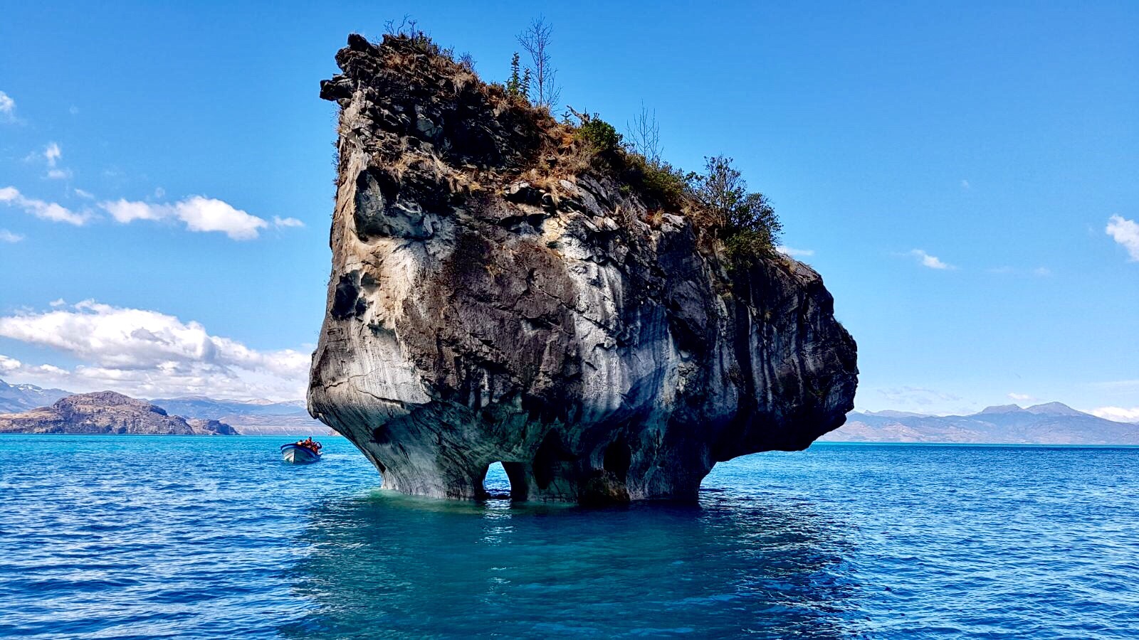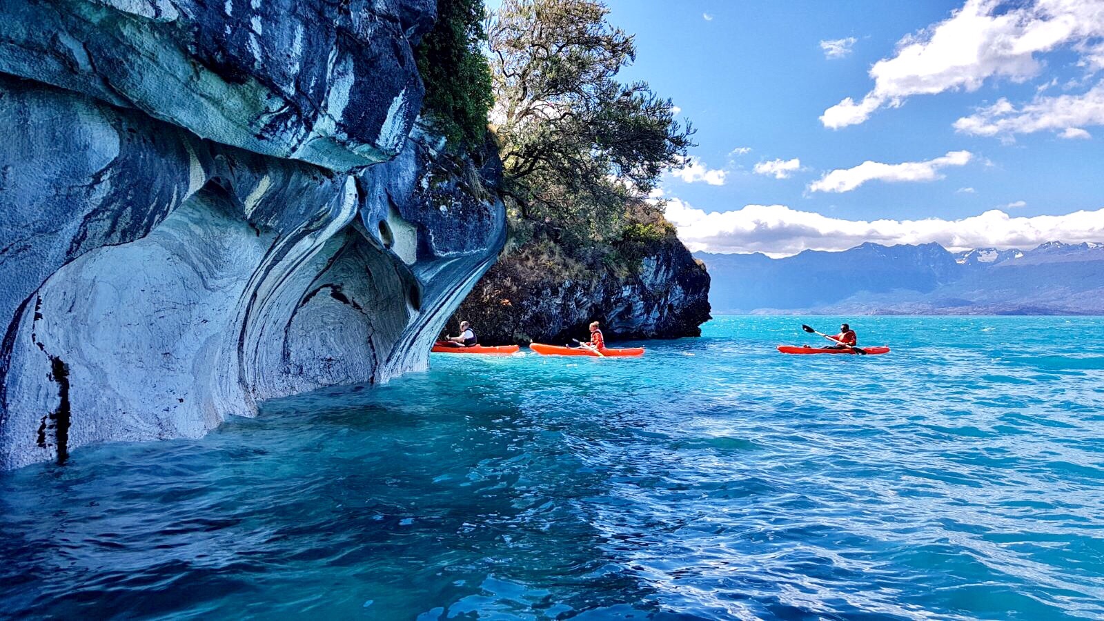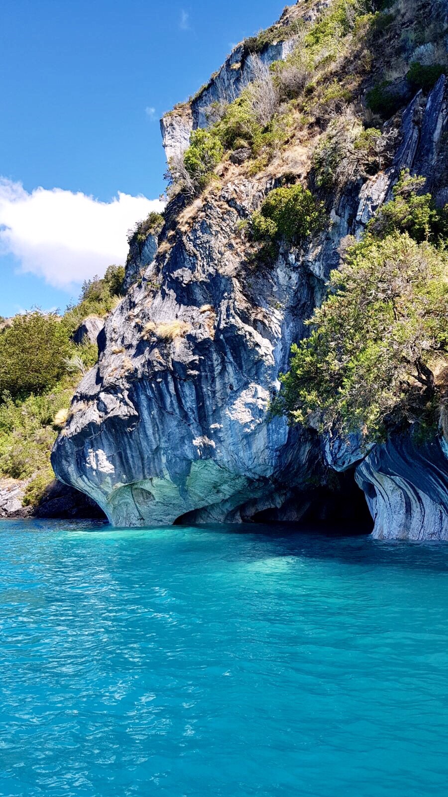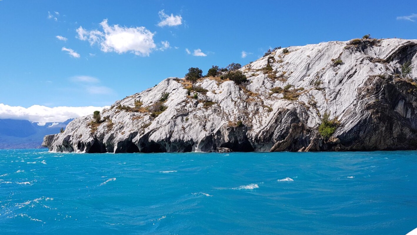 Nous reprenons la route chilienne direction la petite ville de Puerto rio tranquillo, mon telephone aime tellement me suggèrer tranquillou, pour aller voir les cathédrales de marbres, un petit bijoux de la nature aux couleurs presque irréelles