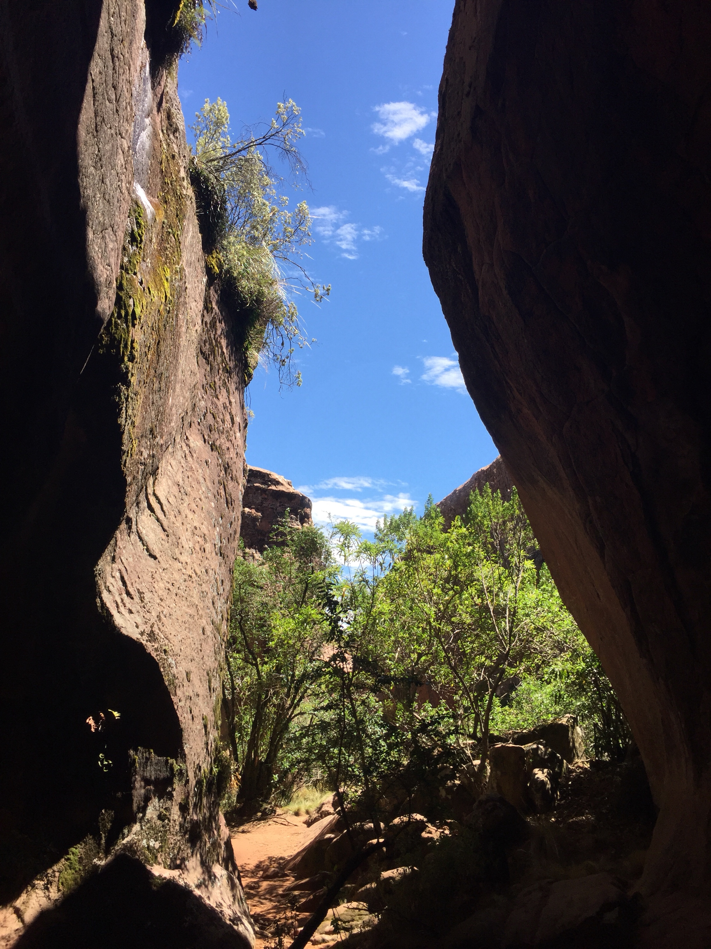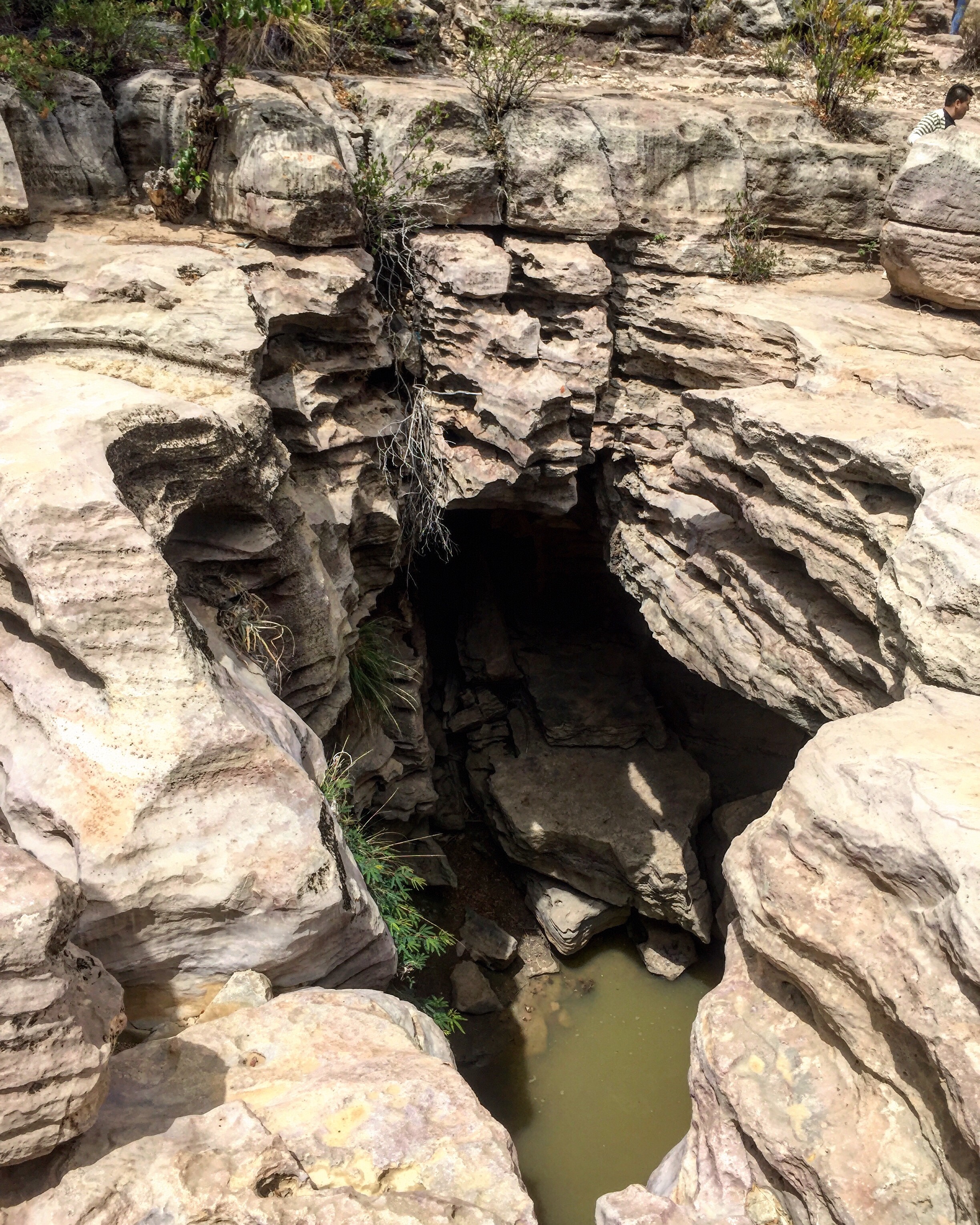Après une balade au cœur de la cité d’Itlas, petit Canyon où l’on peut observer un labyrinthe de cavités creusées par les vagues lorsque ces falaises étaient en bord de mer il y a 65 millions d’années, le programme de la première journée continua avec un peu de spéléologie à La bolivienne = un casque, une lampe et du courage pour certains passages, mais c’est avec finalement sans trop de difficultés que nous avons pu avancer ou plutôt ramper 🙂. Les stalactites et les stalagmites s’étalaient sous nos yeux pendant que les gouttes d’eau résonnaient dans cette immensité sous-terrainne.